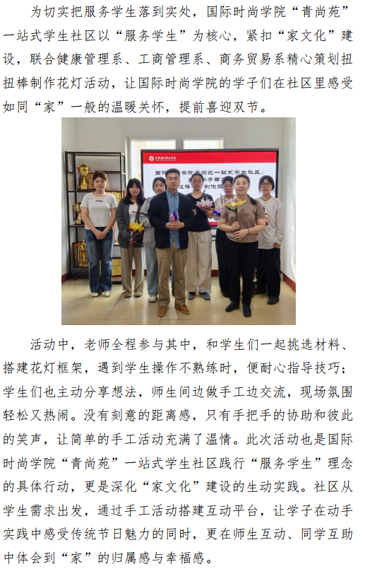 社区服务|国际时尚学院·青尚苑·“一站式”学生社区举办扭扭棒巧制花灯,“家”文化暖情伴双节活动