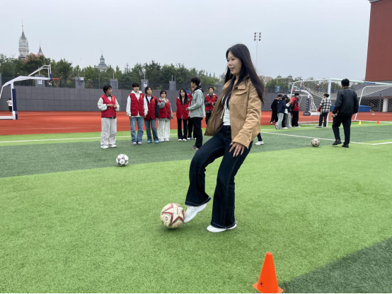 足球射门环节堪称 “欢乐源泉”!参赛同学需先原地转十圈,晕乎乎的状态下瞄准球门发力 —— 有人顶住眩晕精准射门,踢出堪比 “世界波” 的精彩进球,引来全场惊呼;有人则脚步踉跄、方向跑偏,足球直奔场外,逗得全场捧腹大笑,连一旁严肃执裁的裁判都忍俊不禁,忍不住加入欢呼阵营。欢乐与竞技碰撞,趣味与活力交融,每一个滑稽又认真的瞬间,都成为这场联谊活动中最鲜活的记忆。