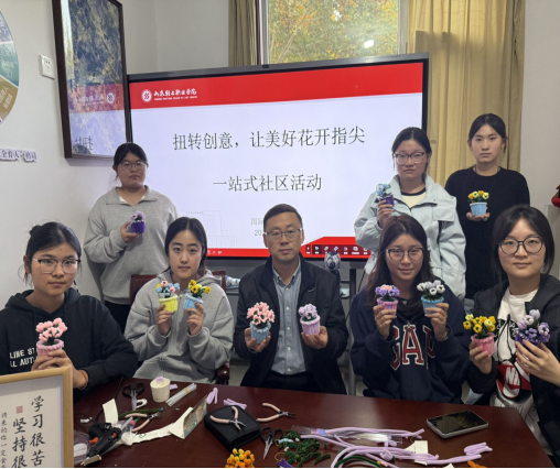 “同学们,我们手中的每一根扭扭棒,今天都将化作一颗绿色的种子。让我们用指尖的创造力,共同播种对美丽中国的殷切希望!”11月3日,在国际时尚学院“青尚苑”一站式学生社区活动室里,国际时尚学院党总支书记杨永亮和思政课教师丁晓燕与学生们围坐在一起,开展了一场别开生面的“指尖播种绿色希望,青春筑梦美丽中国”扭扭棒手工课。