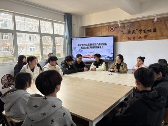 在座谈交流环节,现场交流踊跃。来自不同年级、不同专业的学生代表,结合自身学习生活体验和成长需求,围绕 “如何打造具有山东轻工职业学院特色的品牌活动”“如何提升活动的参与度与覆盖面”“如何将传统文化与现代元素创新融合” 等议题畅所欲言。同学们提出诸多具体建议,例如:举办 “时尚创意 青春市集”,为学生自主设计研发的文创作品、社团成果提供交流平台;通过数字化手段建立 “文化活动积分互认机制”,激励更多同学从 “旁观者” 变为 “参与者”。