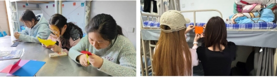 活动现场,同学们围坐在一起,拿起彩纸与剪刀,精心裁剪出自己喜欢的形状。每一张卡片都承载着舍友间细腻的情谊,大家提笔在卡片上书写“晚安悄悄话”:“早点休息,别熬夜啦”“熄灯一刻,好梦正长”……字里行间满是对彼此作息的关心与温馨的叮咛,写完后将卡片贴在床边。随后,各宿舍成员共同签署自己制定的《就寝自律协议》,以集体承诺的方式约定按时熄灯、规律作息,将健康生活的理念从“口头提醒”化为“指尖约定”。