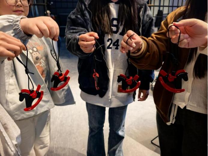 DIY皮具创意坊举办“巧手匠心,童趣满满”皮具摇摇马制作活动。在李磊老师的悉心指导下,同学们沉浸式体验裁剪、打磨、缝线等传统皮艺工序,以针为笔、以皮为纸,用心雕琢出一件件充满童趣的精致作品。活动不仅锻炼了学生的动手实践能力,更在潜移默化中传承了精益求精的工匠精神。